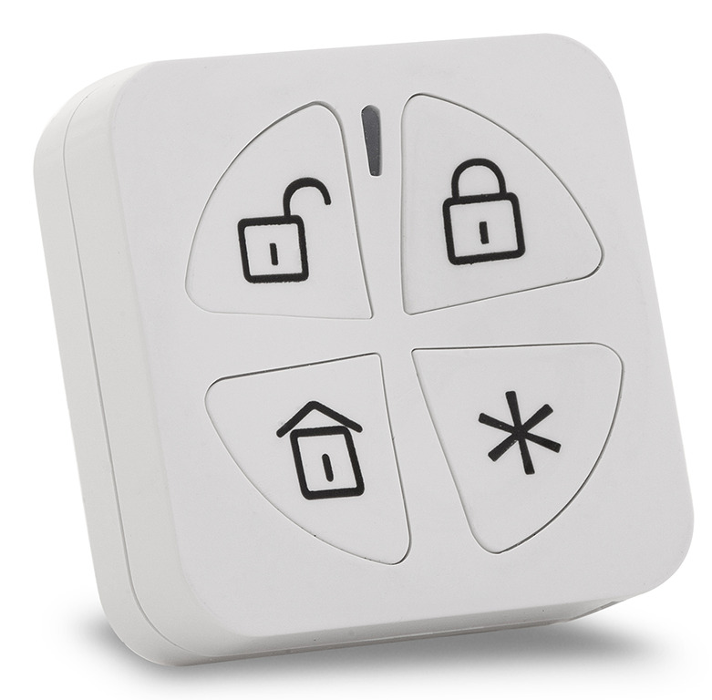 - Buttons for arming and disarming the control panel, panic alarm, and control of one programmable output 4 buttons